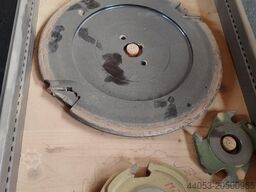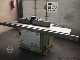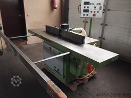 For sale: FROMMIA tilting spindle moulder with electric height adjustment and tilt function, equipped with long table plates, extendable frame support, and eye-level control panel. Speeds: 3,000, 4,500, 6,000, 9,000 rpm. Featuring Aigner integral fence. Optionally available with extensive accessories such as complete drawer cabinet with high-quality cutters, HEBOR dial gauge, Aigner safety feeder for machining short workpieces, bearing rings, cover hood for curve milling, etc.
